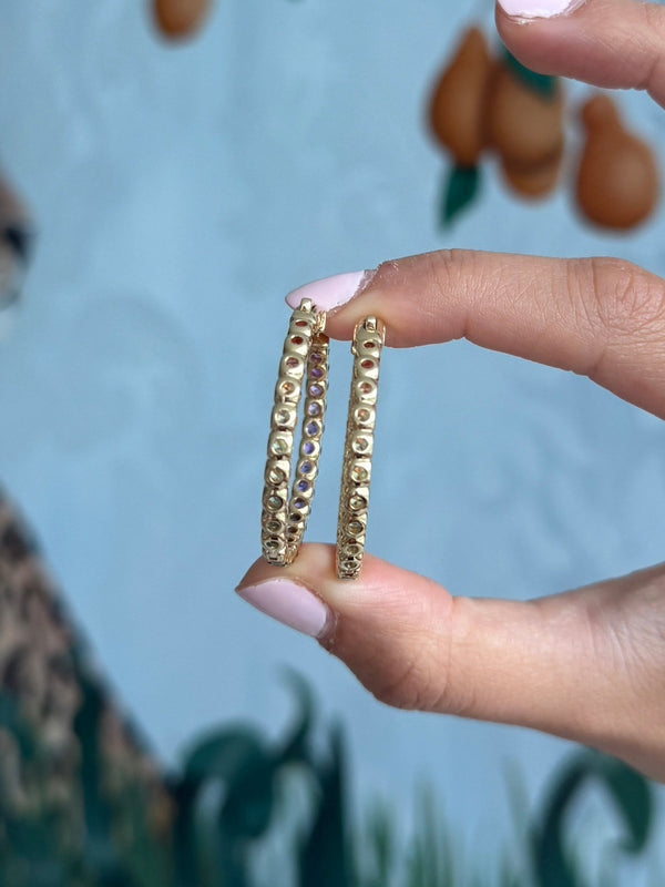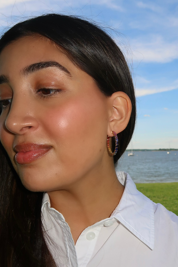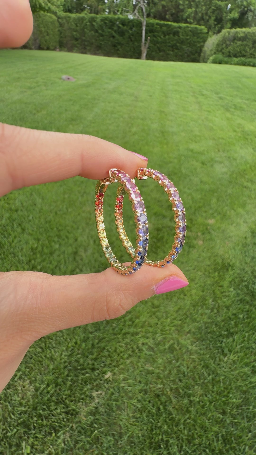Regular price $5,350.00 USDRegular priceSale price $5,350.00 USD1 inch 3 mm Round Rainbow Sapphire Earrings