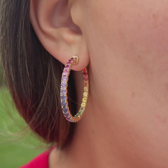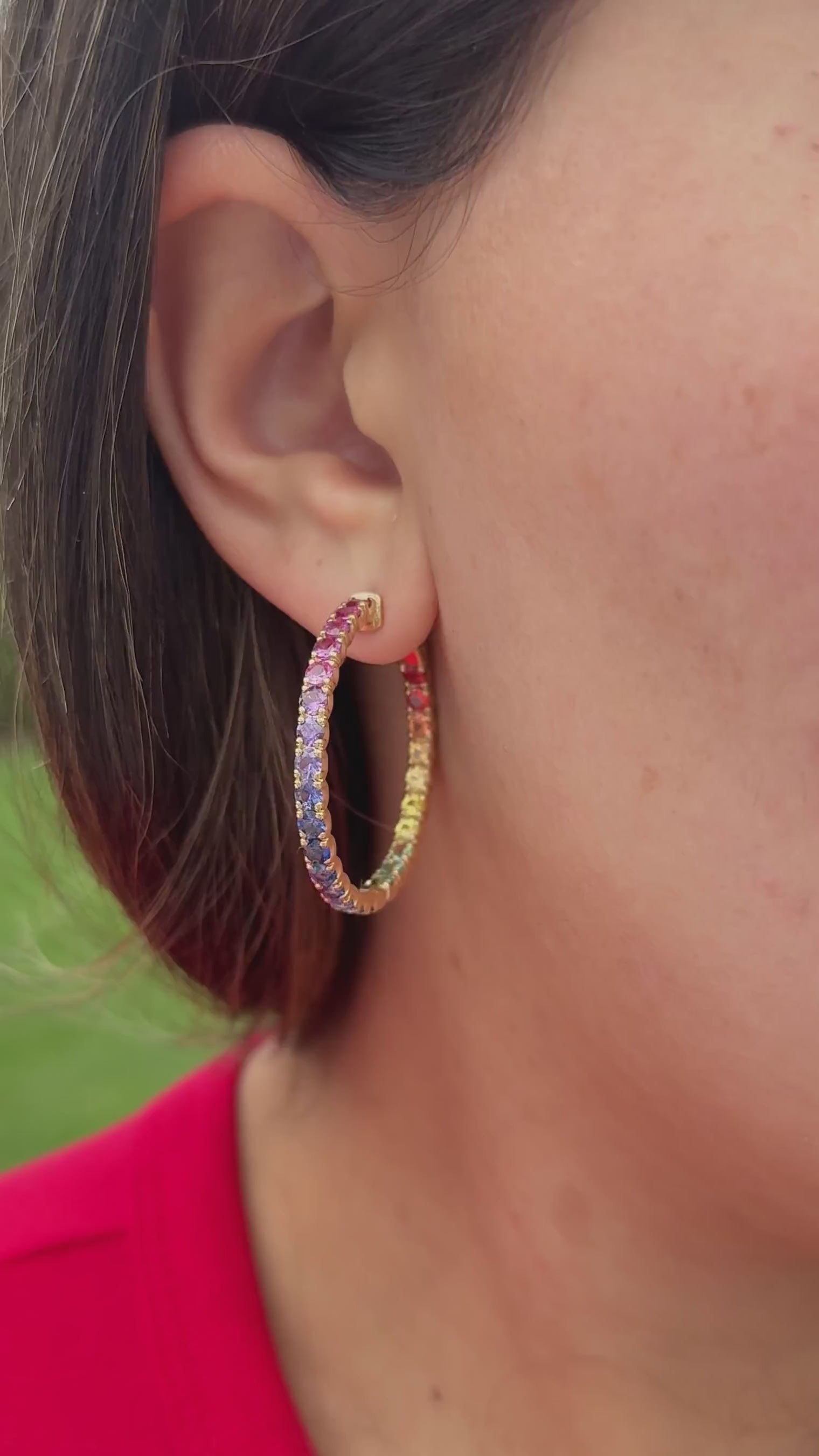 Regular price $5,775.00 USDRegular priceSale price $5,775.00 USD1 inch 3 mm Round Rainbow Sapphire Earrings