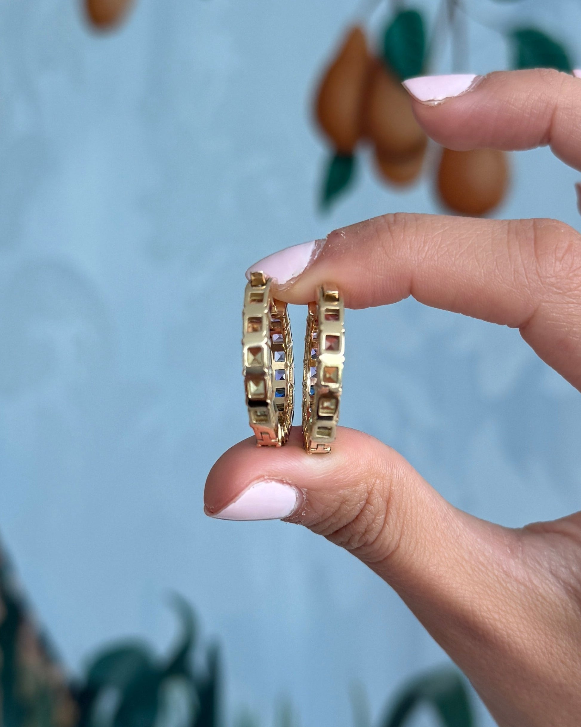 Regular price $5,350.00 USDRegular priceSale price $5,350.00 USD1 inch 3 mm Round Rainbow Sapphire Earrings