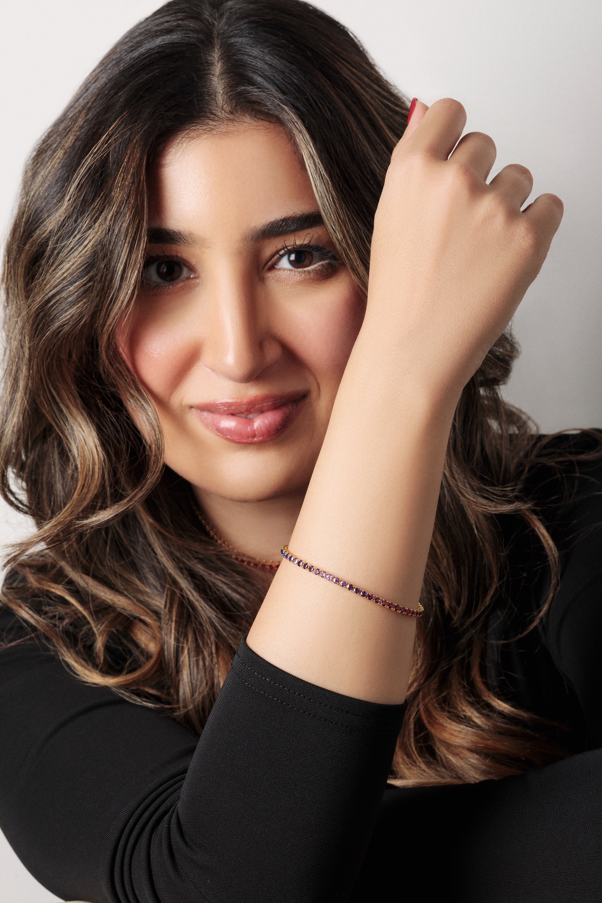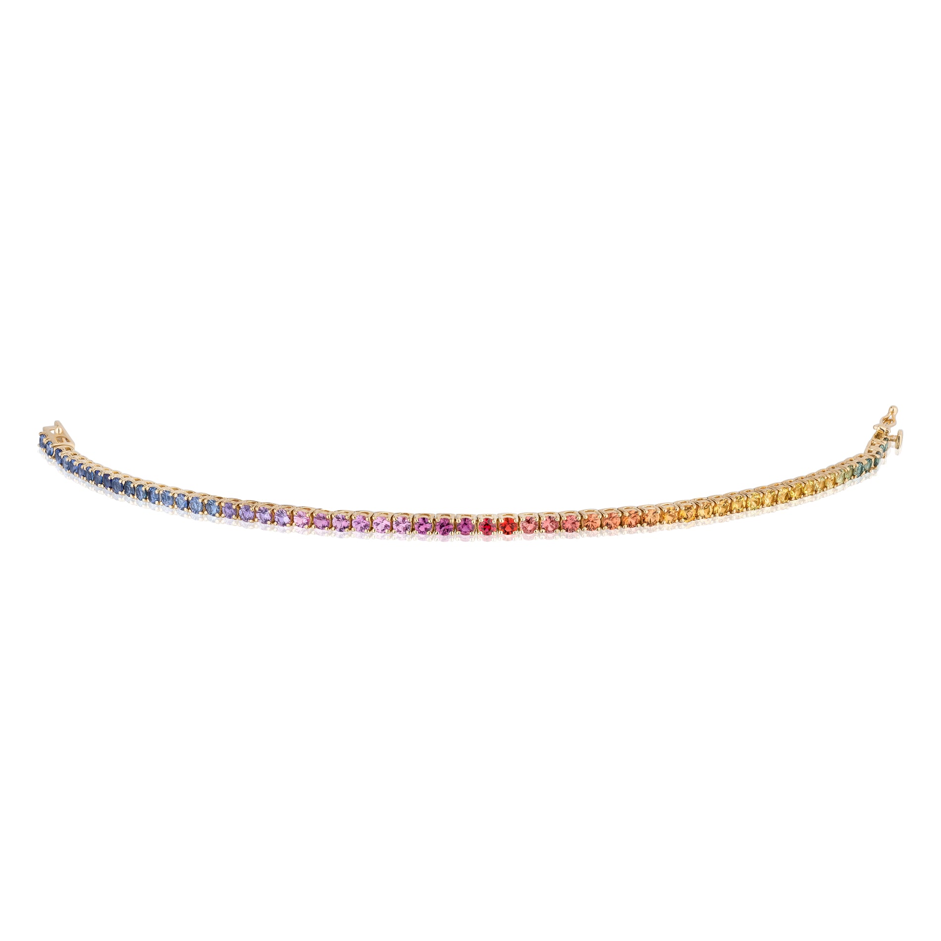 Classic elegance meets color in this 2.75 mm round rainbow sapphire bracelet, crafted entirely in 18K gold.