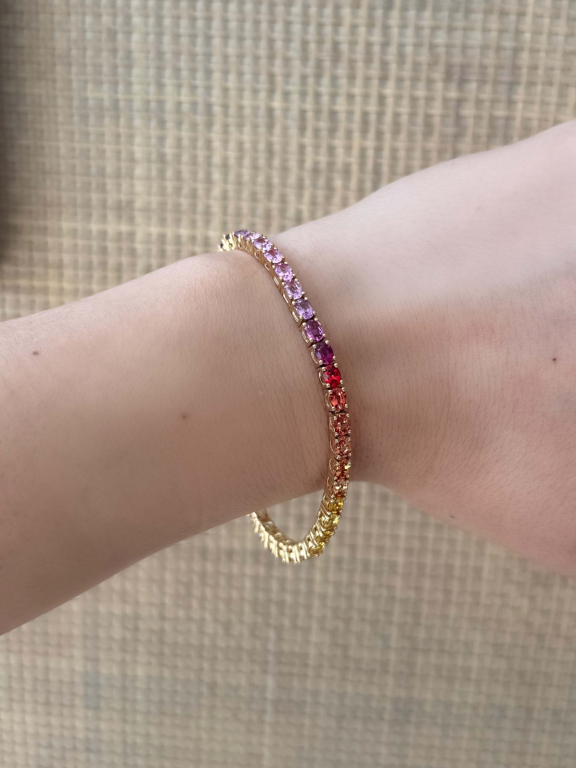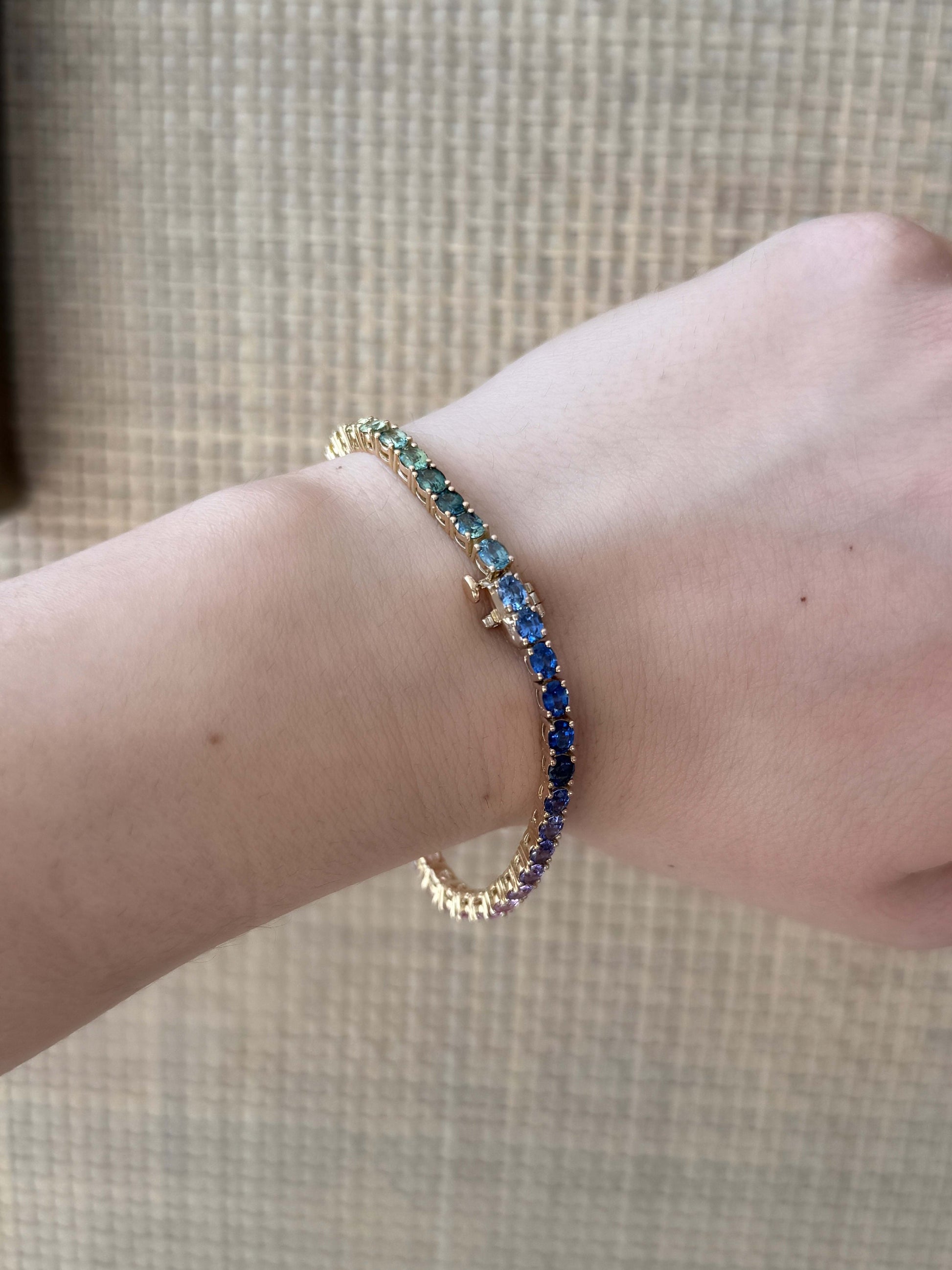 4x3 mm Oval Rainbow Sapphire Bracelet