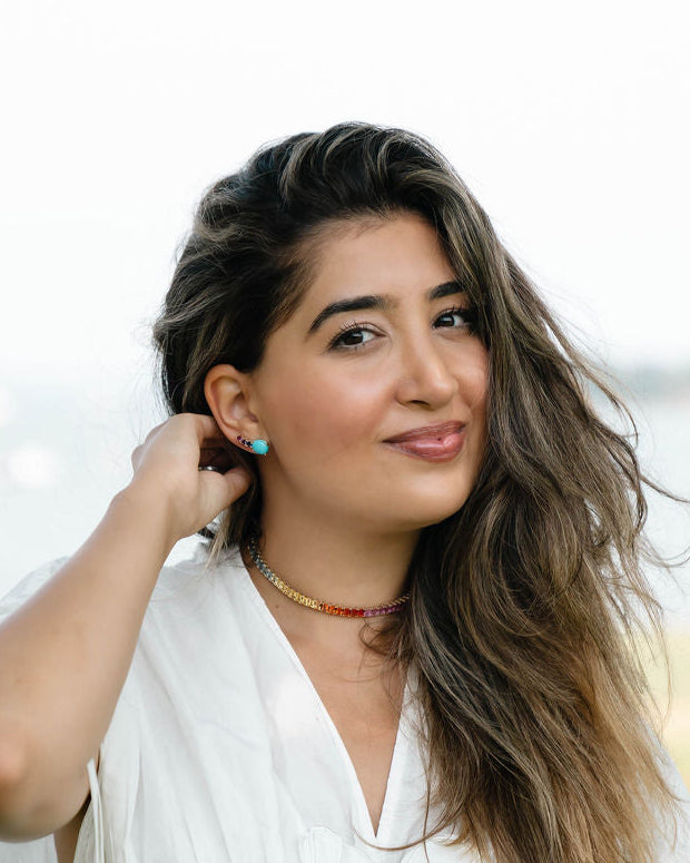 Turquoise & Blue, Purple, and Pink Sapphire Earrings